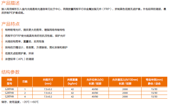 接入网用蝶形引入室内光缆GJXFHA